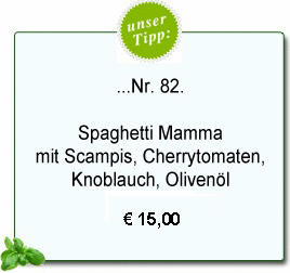 57. | Aglio e Olio mit frischem Knoblauch in Olivenöl und scharfen Peperoni | € 9,50 |